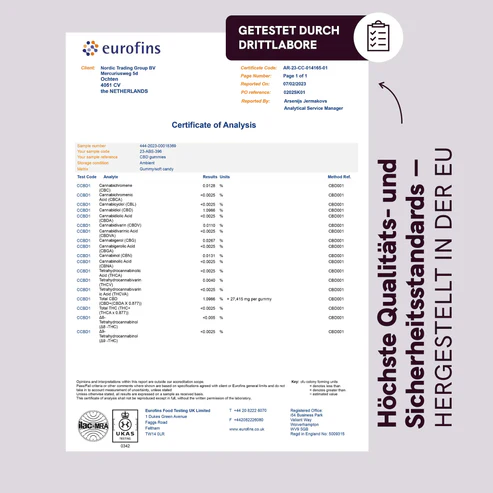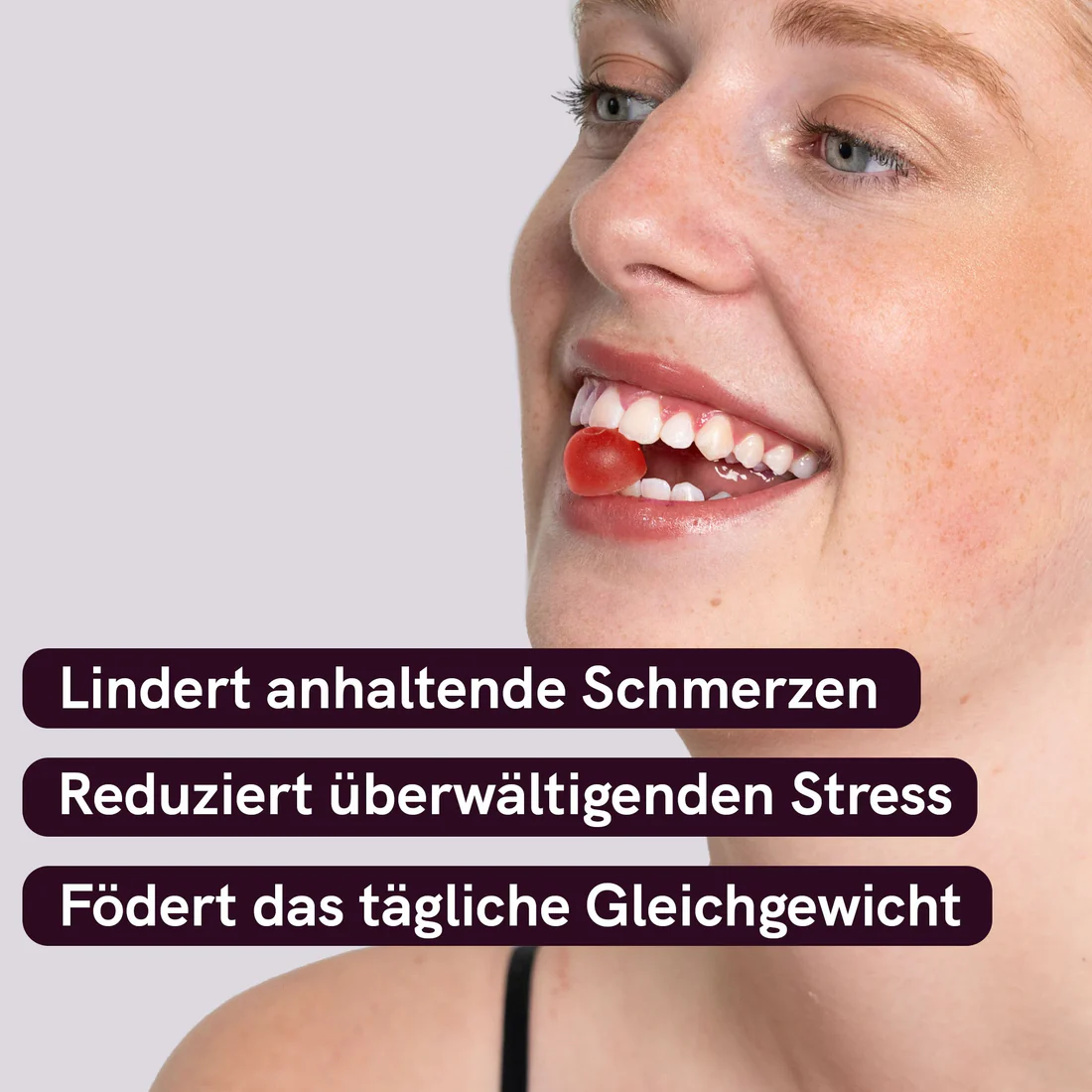 - 1 Fruchtgummi enthält so viel CBD wie 4 Tropfen 15% CBD Öl